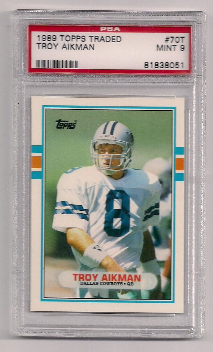1989 Topps #70T Troy Aikman RC (PSA 9) with Replica Bronze ... from images.pristineauction.com Click on the listing or images to shop for singles on ebay. Browse our section of signed and unsigned trading cards at www.fanaticsauthentic.com. Troy aikman 1989 score rc #270 rookie card non auto topps nfl dallas cowboys *x 270. Shop with afterpay on eligible items. Troy aikman rookie cards are great collectibles. 1989 score 270 troy aikman. Barry sanders score rookie card. Recently added card # oldest newest highest srp highest price lowest price biggest discount highest percent off print run least in stock most in stock ending soonest.
